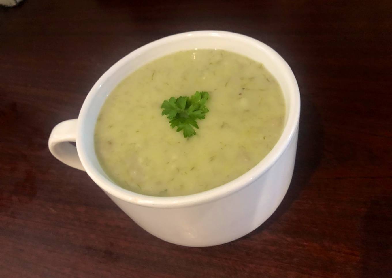 As for the number of servings that can be served to make Potato Leek Soup is Serves 4 servings. So make sure this portion is enough to serve for yourself and your beloved family.